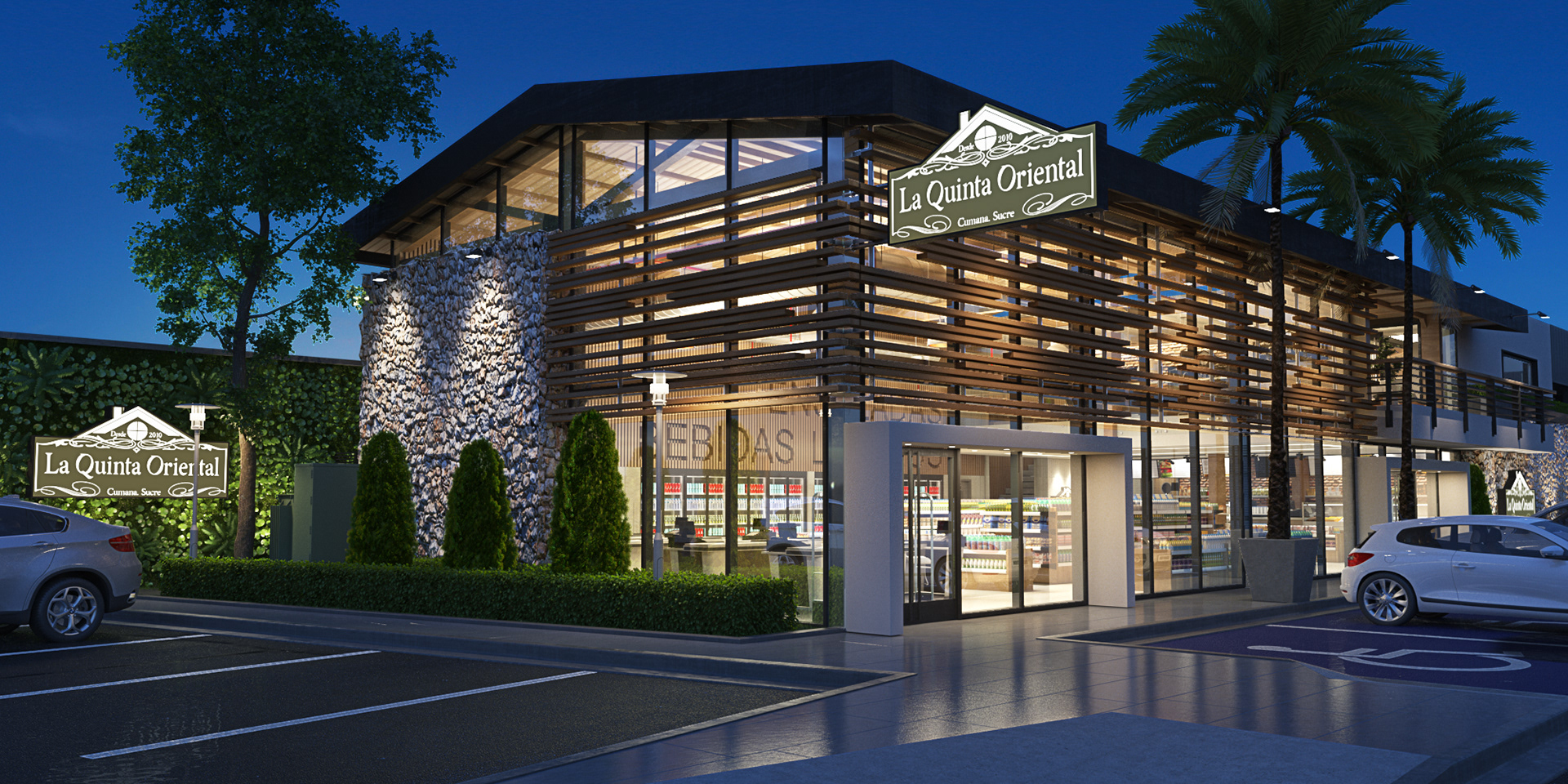 Proyecto de arquitectura para el diseño de local comarcial piloto de la nueva sede principal para la marca Quinta Oriental con enfoque de venta de vivieres y charcuteria asi como tambien para almacenamiento y distribucion al mayor a nivel regional y nacional.